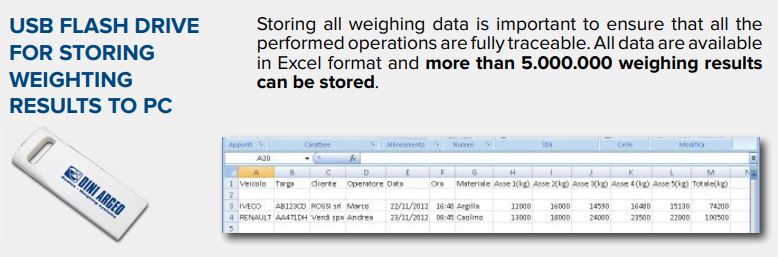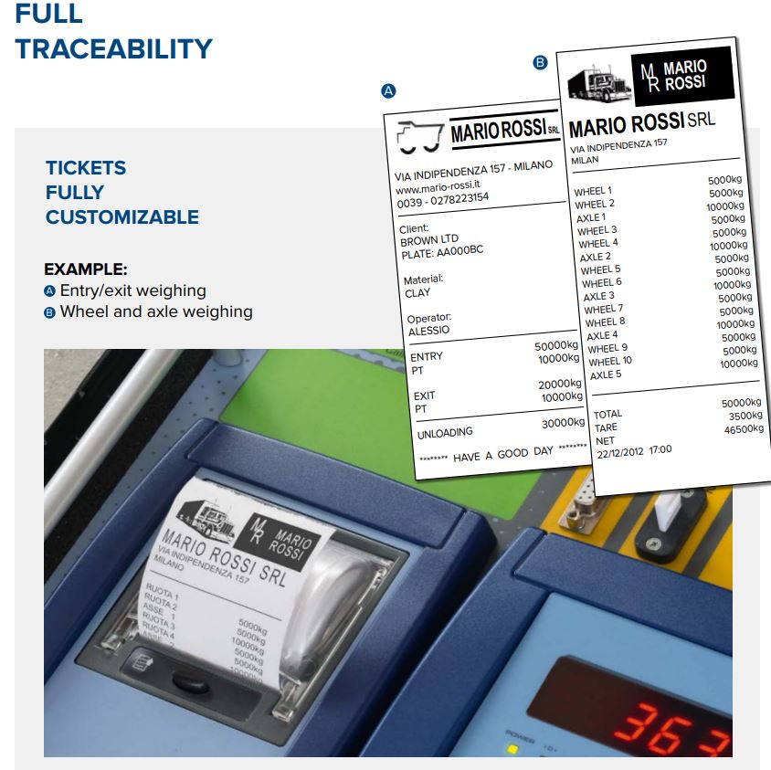 license plate, material transported, customer, supplier, etc.) - Vehicle entry/exit weighing